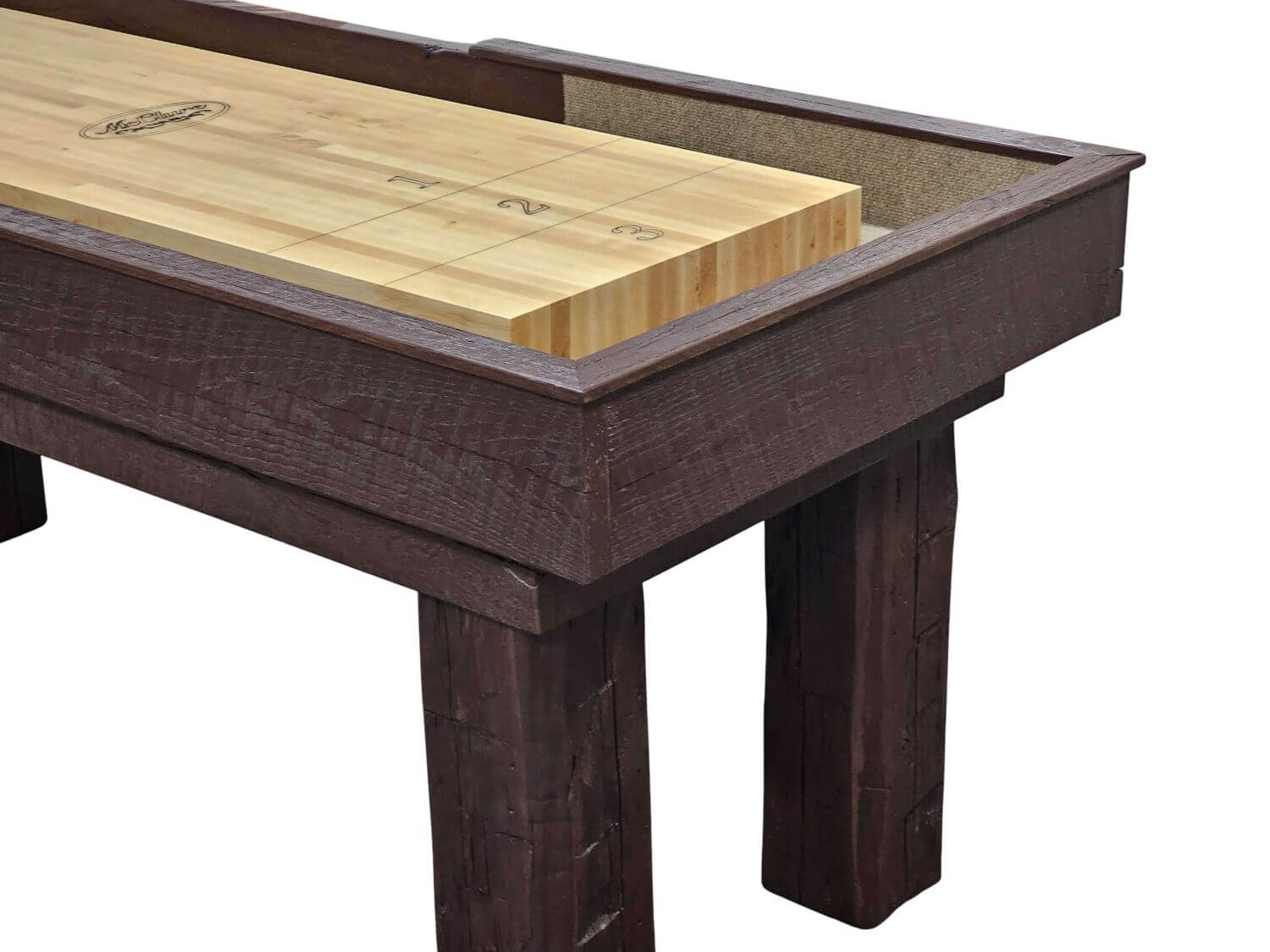 Each Dakota shuffleboard table is truly a unique, rustic, and rugged creation that is perfectly suited for any man cave, cabin, or lodge. The Dakota is a completely custom table that is handcrafted using reclaimed and salvaged lumber from old buildings and barns. At the start of every build, one of our master craftsmen hand selects the wood that will be used to create the Dakota’s cabinet. Most of the lumber used in the Dakota’s cabinet construction is circle-sawn hardwood, while the legs are made from hand-hewn beams. Every Dakota shuffleboard table is made from start to finish by the same master craftsman.