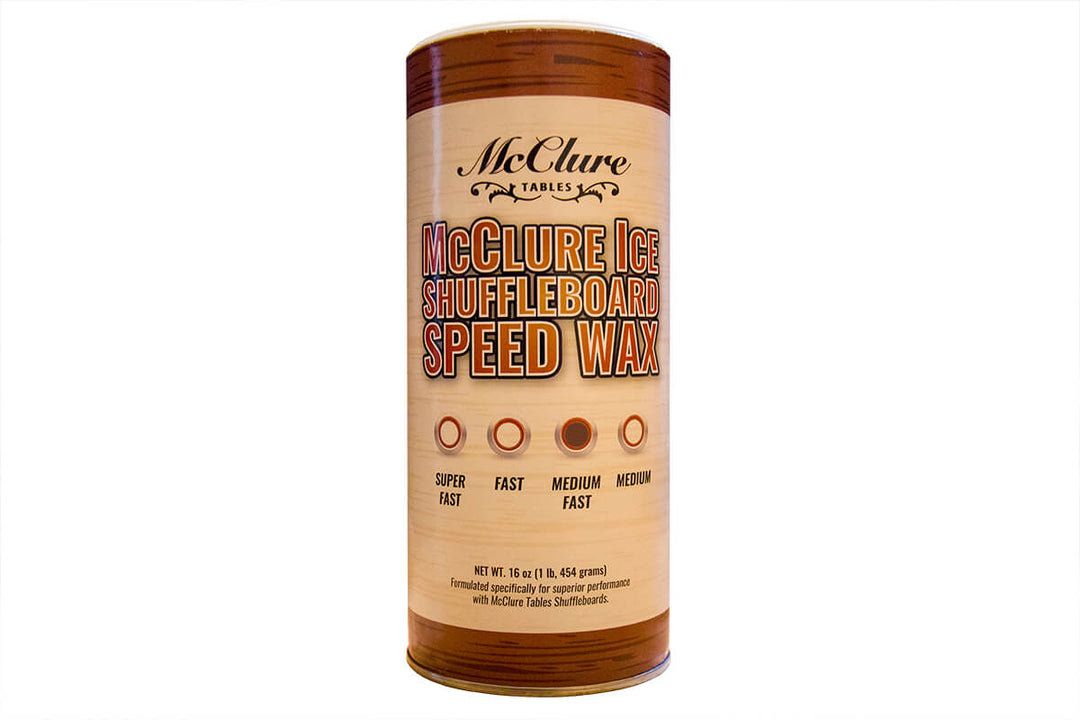 All McClure Shuffleboard Table wax and silicone supplies are proudly made in The USA. Most supplies we have in stock for fast shipment. We mix all the wax in our own factory. We source as many of the raw components for our accessories right here in the USA. For example our climate adjusters used to keep the shuffleboard table accurate are made here in Michigan from a local supplier. The threaded rods that connect the brackets are made in Ohio. We make all the shuffleboard playing surfaces in house at the McClure Shuffleboard factory. The score units located in this shuffleboard supply section are also all made in our own factory. Some component parts like hardware and electronic LED panels are impossible to source from the USA, so they are imported. We offer a money back guarantee on any supplies we sell. If for any reason you are not happy, simply return for a full refund. We are proud to offer this line of McClure Shuffleboard Table supplies. We carry Shuffleboard Covers, Wax, Shuffleboard Pucks or Weights as well as repair and maintenance parts for shuffleboard tables.
