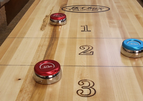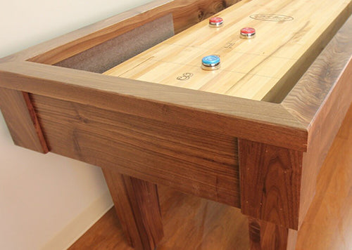 The heart of any shuffleboard table is its playboard, and the Americana Series delivers unmatched performance with solid hard maple playboards. Sourced locally, our hard maple is stronger and more resistant to dents and dings than the Chinese birch or beech wood commonly found in imported tables. Finished with a durable, furniture-grade poly coating, our playboards offer a smooth, fast, and consistent playing surface for both casual and competitive players.