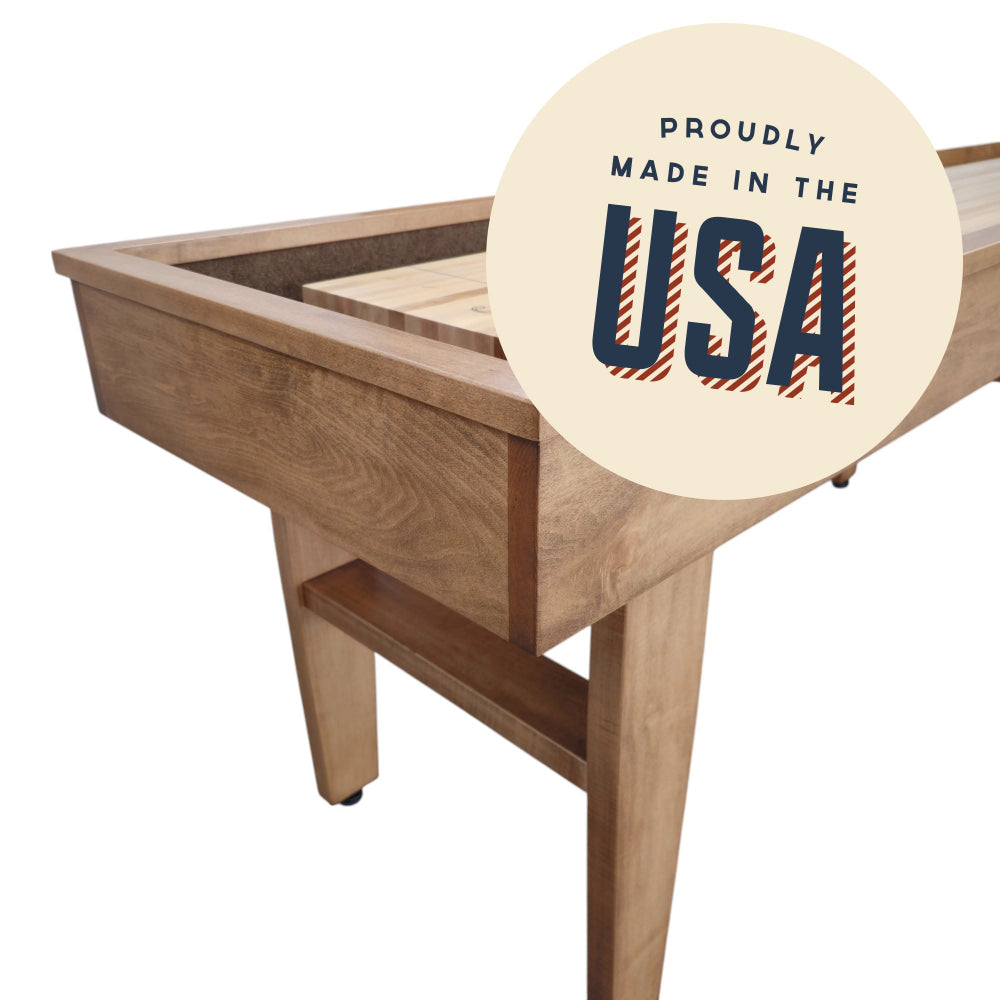 Every Americana Series shuffleboard table is crafted by skilled artisans in the United States, ensuring meticulous attention to detail and superior quality control. Unlike mass-produced tables imported from China, our tables are built to last for generations, supporting local craftsmanship and sustainable practices. We price these at a very affordable price, giving you a 100% American-made shuffleboard option.